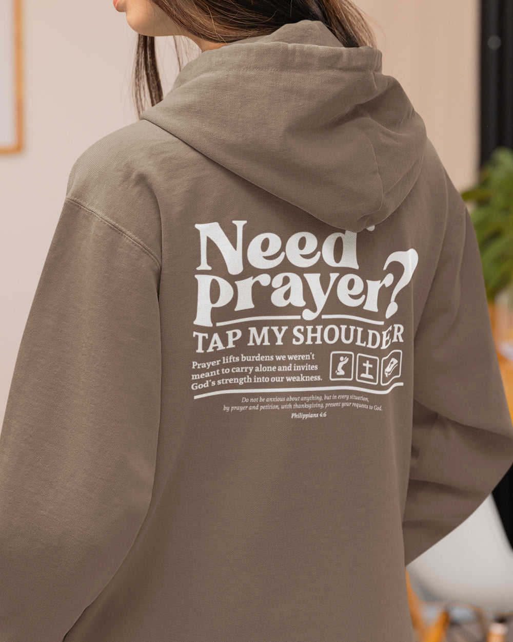 More than a hoodie—it’s an invitation. The Need Prayer? Tap My Shoulder Christian streetwear hoodie is designed to spark real conversations and real prayer in everyday life. Soft, premium fabric with a bold faith-based message, perfect for outreach, ministry, worship nights, or everyday wear. Wear your faith. Be approachable. Be the hands and feet of Jesus.